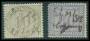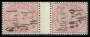 1875. 2 mk. lillarød i par med hvidt mellemstykke blækannulleret.