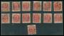 1875. 10 aur rød. Planche med 13 stk. med pæne stempler.