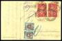 1923. 200 mk.rød i par på postkort til Schweiz, der sat i porto.
