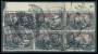 TYRKIET. 1905. Provisorium, 15 Piaster / 3 Mark, mørkviolet, uden vandmærke (6-blok med øvre marginalrand). Annulleret CONSTANTINOPEL 10.8.06. Sjælden stor enhed.