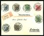 SYDVESTAFRIKA. 1898. Overtryk i 2 ord, 3 Pfennig, brun (2) og 5 Pfennig, grøn (2) samt 10 Pfennig, rosa. Rekommanderet brev sendt fra REHOBOTH 20.9.01 til Leipzig.