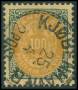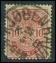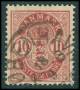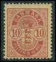 1884. 10 øre rød med variant: Streg til venstre for våbenskjold.