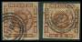 1858. 4 sk. brun x 2 med Esrom stp. Tofte.