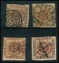 1858. 4 sk. brun x 4 med diverse stempler.