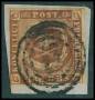 1854. 4 RBS kastaniebrun med rammefejl i øvre venstre side på klip.
