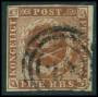 1854. 4 RBS Thiele tryk 3 kastanjebrun pl. IV nr. 1. Attest LN.