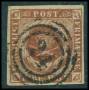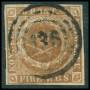 1854. 4 RBS kastaniebrun pl. III-60. Attest CAM.