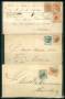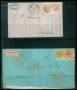 1864. 3 sk. lilla i par på brev samt 4 og 8 sk. på brev, alle mærker er defekte.