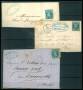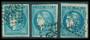 1863-70. Nepoléon III, 20 Centimes, blå. Planche med 3 breve.