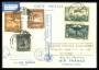 1936. Luftpost, 10 Francs, blågrøn og 85 Centimes, grøn. Postkort (Air France) sendt fra LE BOURGET 20.11.37 til Buenos Aires i Argentina. Sendt retur via SANTIAGO 27.NOV.37. Ankomststemplet PARIS 2.1...