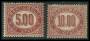 TJENESTE. 1875. 5 og 10 L. vinrød. AFA 1550,-