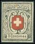 1849. 5 c. sort/rød forfalskning uden lim fra Album De Facimiles med officielle forfalskninger udgivet af Philatelist Unionen i Geneve i 1928 i et oplag på kun 500 stk.