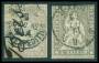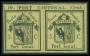 1843. 5 c. sort/grøn i par forfalskning fra Album De Facimiles med officielle forfalskninger udgivet af Philatelist Unionen i Geneve i 1928 i et oplag på kun 500 stk.