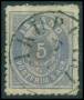 1875. 5 aur blå linietakket med tyndhed.