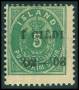 1902. 5 aur grøn I GILDI med sort overtryk. AFA 2500,-