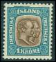 1907. 1 kr. brun/blå med variant: Spies over N-ramme. AFA 1000,-