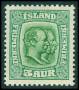 1907. 1 eyr grøn/rød i 5-stribe med variant i 4 mærke: Åbent SV-hjørne.