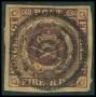 1851. 4 RBS pl. II-48 Ferslew dobbeltannulleret med blækkryds og stumt stp. Atetst CAM.