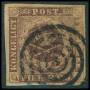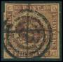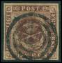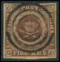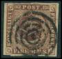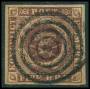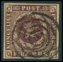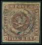 1851. 4 RBS pl. I-61 Ferslew blækannulleret med lille hul fra udfaldet sandkorn. Attest LN.