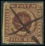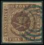 1851. 4 RBS pl. II-66 Ferslew dobbeltannulleret med blækkryds og stumt stp.