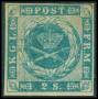 1851. 2 RBS blå Ferslew med variant: Spids fodstreg.