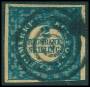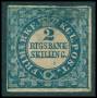 1852. 2 RBS blå Thiele pl. II-97 type 9. meget bredrandet. Attest CAM.