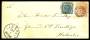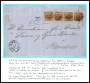 1863. 2 sk. blå og 4 sk. brun tryk 5 x 7 i alt 30 sk. på brev fra Kjøbenhavn via Hamburg til London, meget sjælden frankering, 2 stk. 4 sk. er let beklippede, denne kombination er ikke nævnt i DAKA. A...