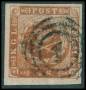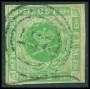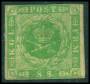1854. 8 sk. grøn med nr. stp. 227 (DAKA tidligt reg. anvendelse 1864).