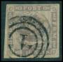 1854. 16 sk. gråviolet med sjældent norsk stp. Sandøsund.