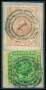 1864. 8 sk. grøn med del af venstre marginal og 4 sk. rød på klip.