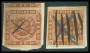 1858. 4 sk. brun pl. III-6 med variant: Pust i stedet for post.