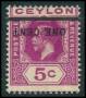 CEYLON. 1918. 5 c. med variant: Omv. overtryk. SG 70 £