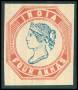 INDIEN. 1854. 4 a. Victoria uden lim forfalskning fra Album De Facimiles med officielle forfalskninger udgivet af Philatelist Unionen i Geneve i 1928 i et oplag på kun 500 stk.