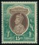 INDIEN. 1937. 15 R. grøn/brun. Mi. 140 €