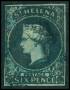 ST. HELENA. 1856. 6 p. blå med rift og olieret. Mi. 250 €