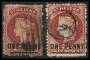 ST. HELENA. 1863. ONE PENCE/6 p. brunkarmin begge typer dog tyndheder. Mi. 410 €