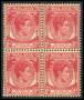 STRAITS SETTLEMENT. 1941. 8 c. scarlet i 4-blok, brunlig lim. SG 60 £