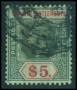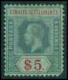 STRAITS SETTLEMENT. 1923. 5 $ rød/grøn pl. II. SG 85 £