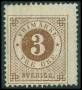 1872. 3 øre brun. Facit 2000,-