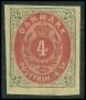 1870. 4 sk. prøvetryk i grå/rød med lim ?