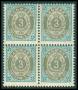 1895. 3 øre blå/grå i 4-blok.
