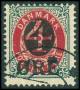 1904. 4/8 øre grå/rød med variant: Hage på 4-tal. AFA 1000,-