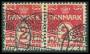 1905. 2 øre rød i par, begge mærker med variant: Delvis uden hjerter.