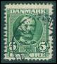 1907. 5 øre grøn med variant: Farveløs plet retoucheret. AFA 6000,-