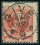 1905. 1 øre orange enkelt og par på postkort, højre mærke med SAVA variant: Farvestreg bag venstre løve.