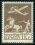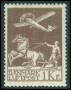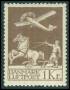 1929. 1 kr. brun luftpost med variant: Brud på venstre vinge. AFA 1800,-