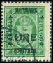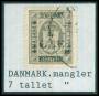 1926. 7/3 øre grå med stor del af overtryk mangler.