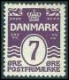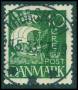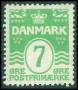 1926. 7 øre lysgrøn med variant: Hak i randen under højre løve. AFA 1200,-