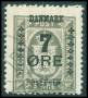 1926. 7/3 øre grå med delvis svigtende overtryk.