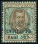 TYRKIET. 1923. 18 pi. 30 para/1 l. brun/grøn, med DOBBELT OVERTRYK.